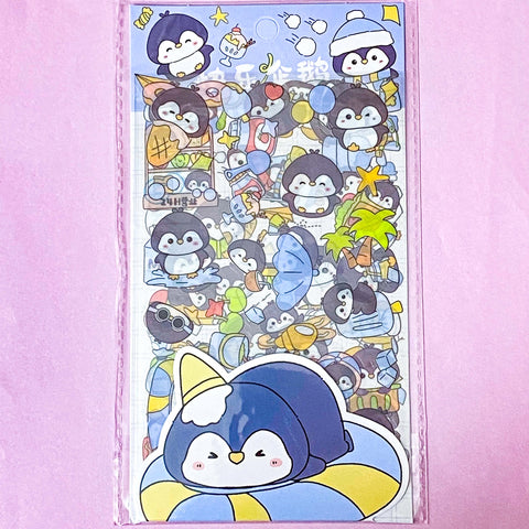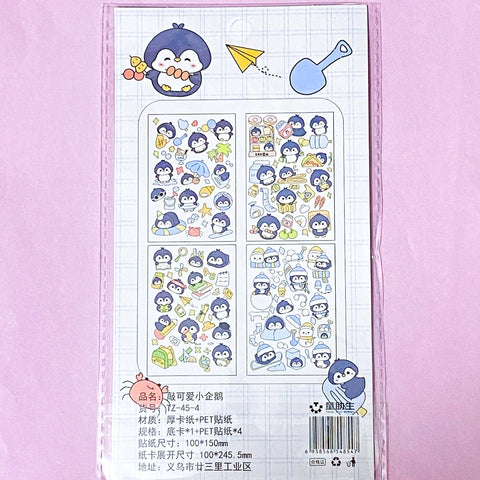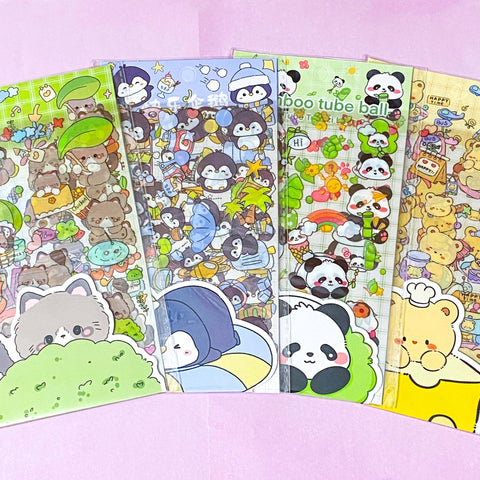 Clear Plastic Stickers -4 Sheets per Pack RACCOON PENGUIN PANDA or BEAR