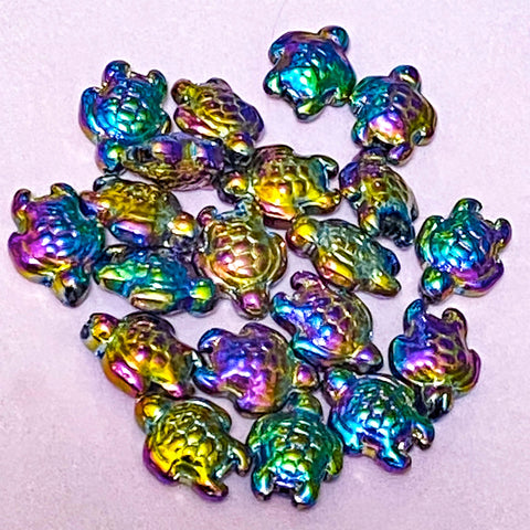 RAINBOW TURTLE Jumbo Metallic GLASS BEAD 18mm