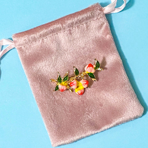 BOTANICAL BROOCH- PEACH FRUITS ON A BRANCH