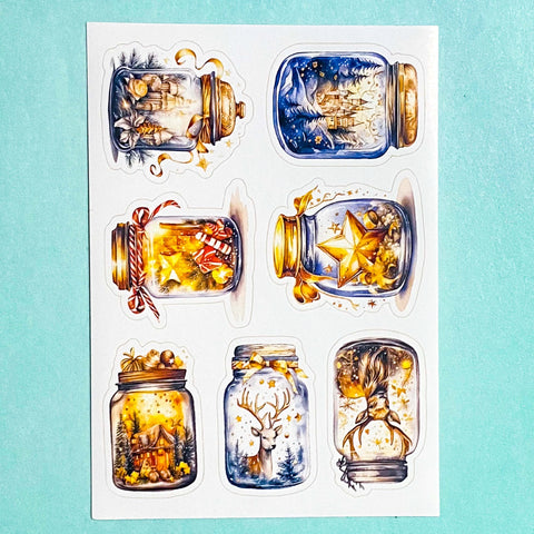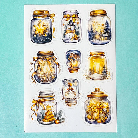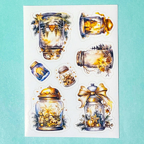 CHRISTMAS MAGICAL JARS Sticker Sheet Glossy- GOLDEN GLOW
