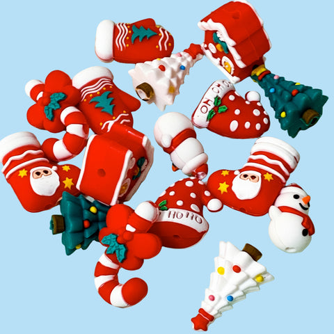 CHRISTMAS SILICONE BEADS -STOCKING GLOVE SNOWMAN HOUSE TREE CANDY CANE HAT