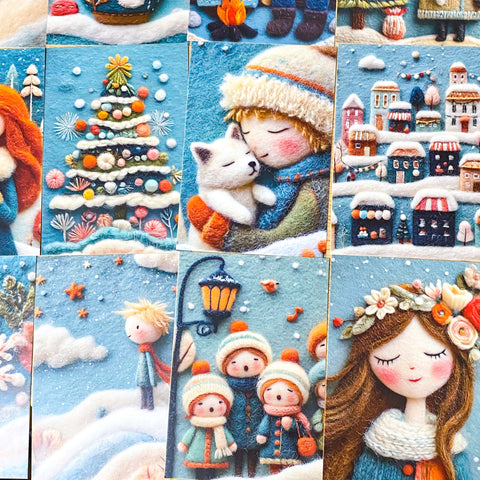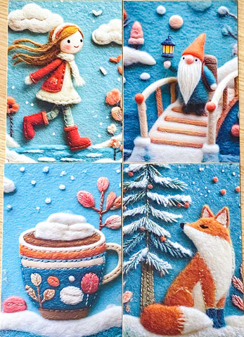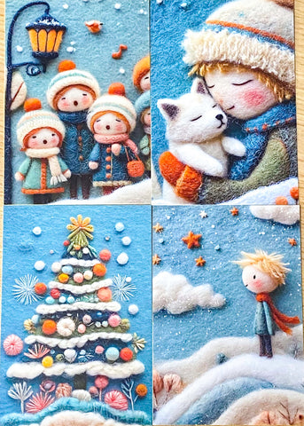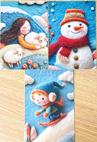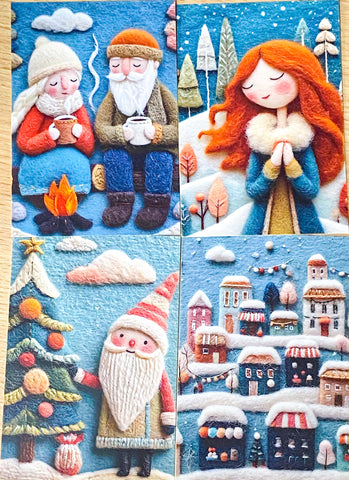COSY & WARM FESTIVE POSTCARD Set of 3/4 "3D Felt Stichwork"