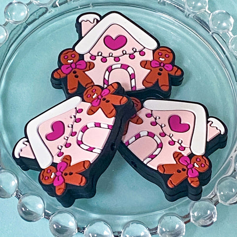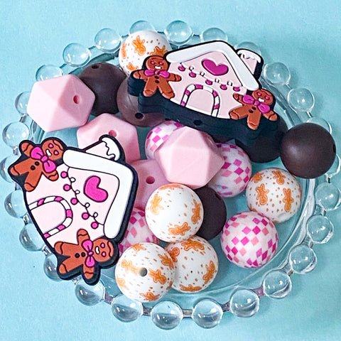 GINGERBREAD COTTAGE Pink & Chocolate Brown SILICONE BEADS 15mm & 40mm