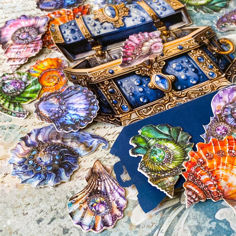 Hidden Treasures Sticker Pack - VINTAGE JEWEL SEASHELL - Imperfect Treasure Box - 20 Stickers
