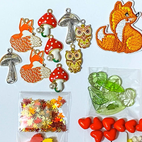 • 9 enamel charms-some in pairs- including mushroom, fox and owl