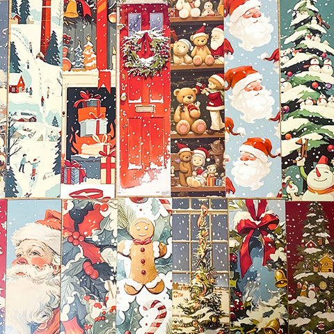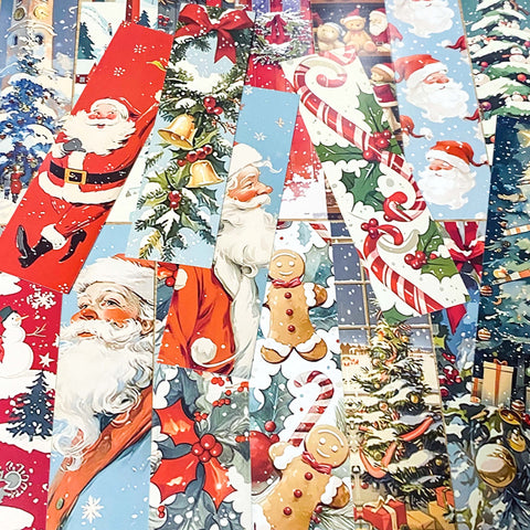 You will receive a set of 4 Christmas-themed card bookmarks. Bookmarks measure approximately 150mm tall and 40mm wide. The bookmarks are double sided with the design on both sides. Lovely for popping in with Christmas books when given as gifts.