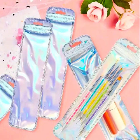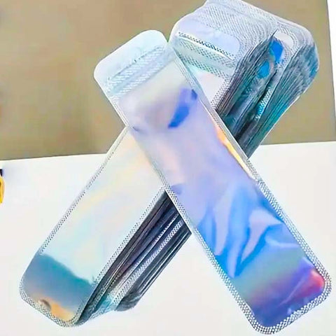 RE-SEALABLE HOLO LONG DISPLAY BAG- Pen Packaging Self Seal PINK LILAC BLUE MINT SILVER