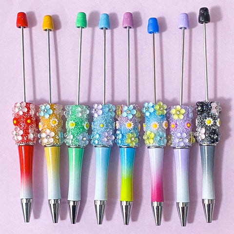 These pen blanks are perfect for making your own beaded pens. Very ornate with ombre subtle glitter barrel and sparkly floral decoration at the top. The decoration goes all the way around the pen.