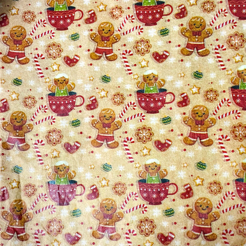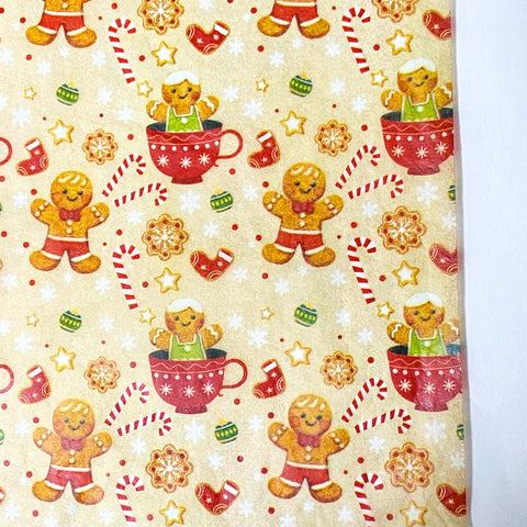 Tissue Paper 2 Sheets- GINGERBREAD MEN CANDY CANES & RED MUGS on Pale Gold