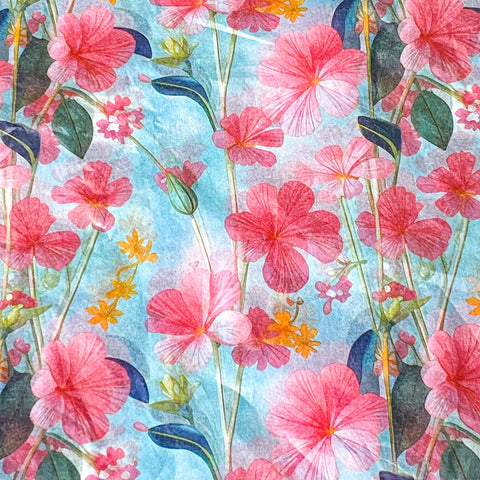 Tissue Paper 2 Sheets- PINK COSMOS on Soft Blue *slight second
