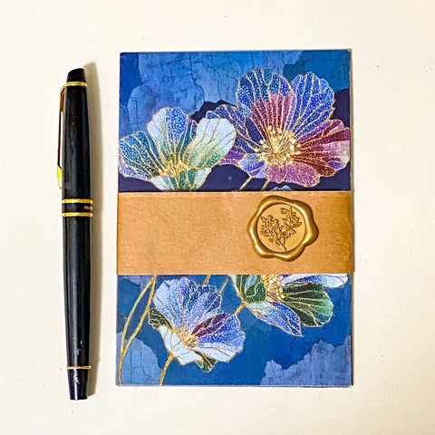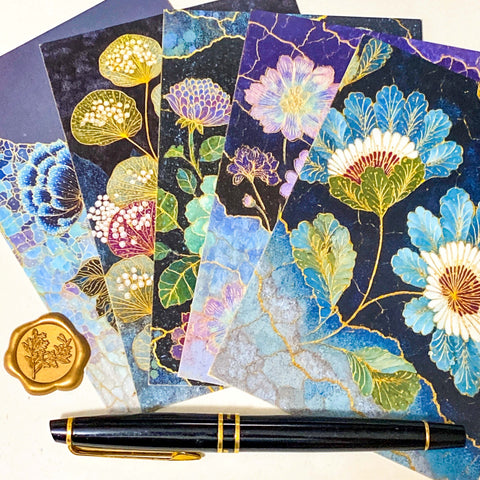 Jewel Tone Botanical Art Card Set of 5- Sapphire, Teal & Gold Floral Postcards