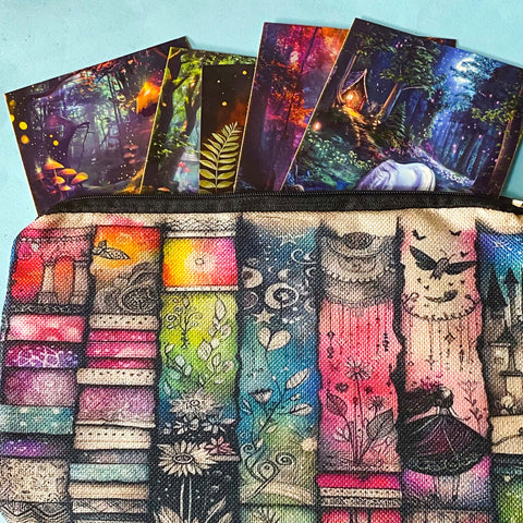 STORYBOOK BOOKSHELF Canvas Pouch With Magical Forest Postcards- Book Lover Set