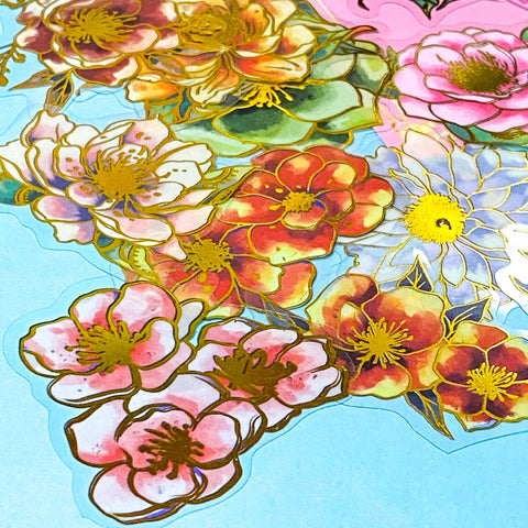 GILDED BLOOM BOTANICAL STICKERS - 50 Large Gold Foil Florals