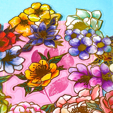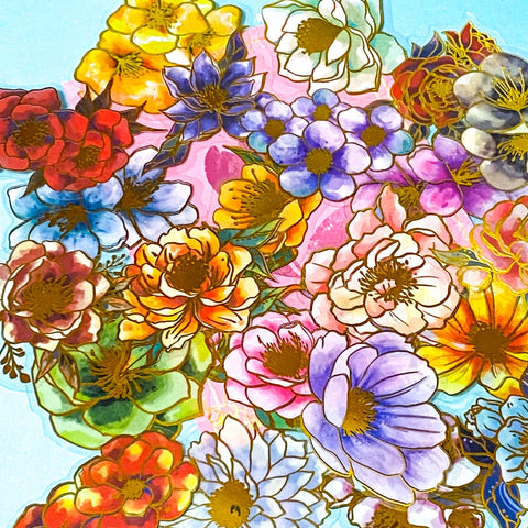 This 50-piece set features richly coloured florals in jewel and pastel tones, with elegant gilded detailing that catches the light beautifully. Each design measures up to approximately 70mm, making them ideal as focal embellishments for journals, scrapbooks, happy mail, gift wrapping and creative projects.