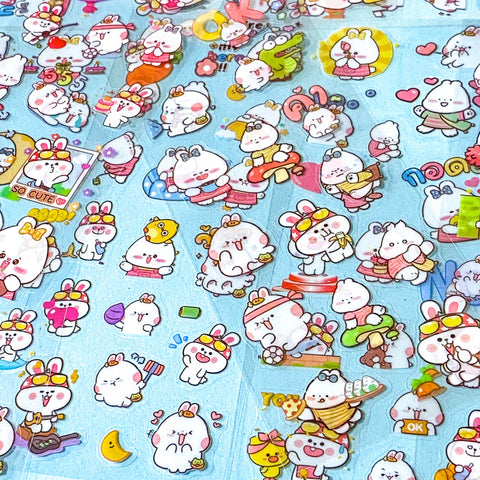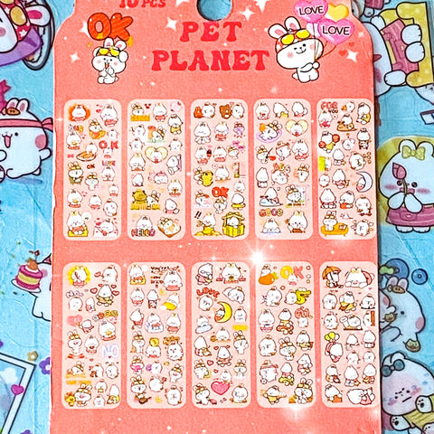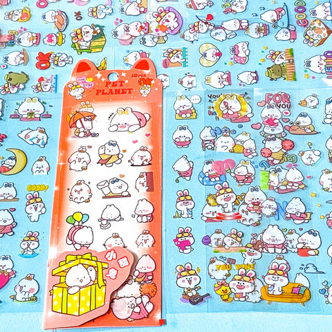 PET PLANET- SHORT EARED BUNNY CHARACTER 10 Clear Sticker Sheets Spring Rabbit Planner Stickers