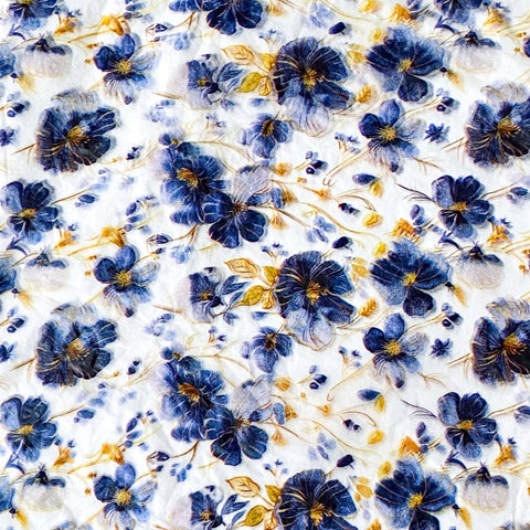 You will receive 2 sheets of fine tissue paper with deep inky blue/purple floral pattern. The sheets measure 34cms by 50cms so they are smaller than the Rex London tissue. The sheets will come folded.