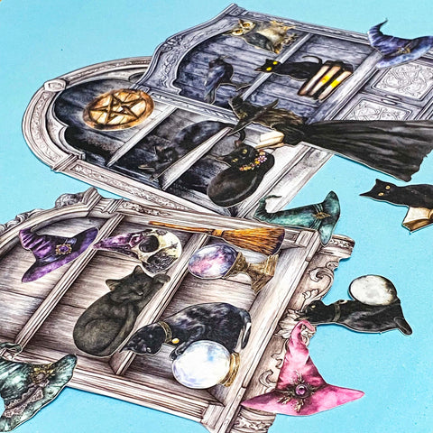 WITCHES CABINET Of Curiosities Ephemera Pack-Black Cat, Spell Book, Potions- Shelves & Cup Outs- Gothic Scrapbooking & Junk Journalling