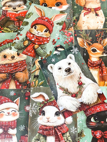 RED & GREEN Individual FESTIVE ANIMAL POSTCARD